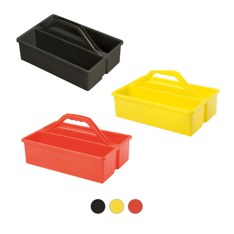 Le panier de rangement de vos produits d’entretien avec poignée et séparateur est l’allié indispensable pour le ménage ! Cette petite caisse de rangement permet d’avoir tous les produits nettoyants à portée de main et bien ordonnés. Avec son casier, disponible en option, les petits objets seront accessibles. Ce bac d’intervention est également idéal pour se constituer une petite boîte à outils facilement transportable.