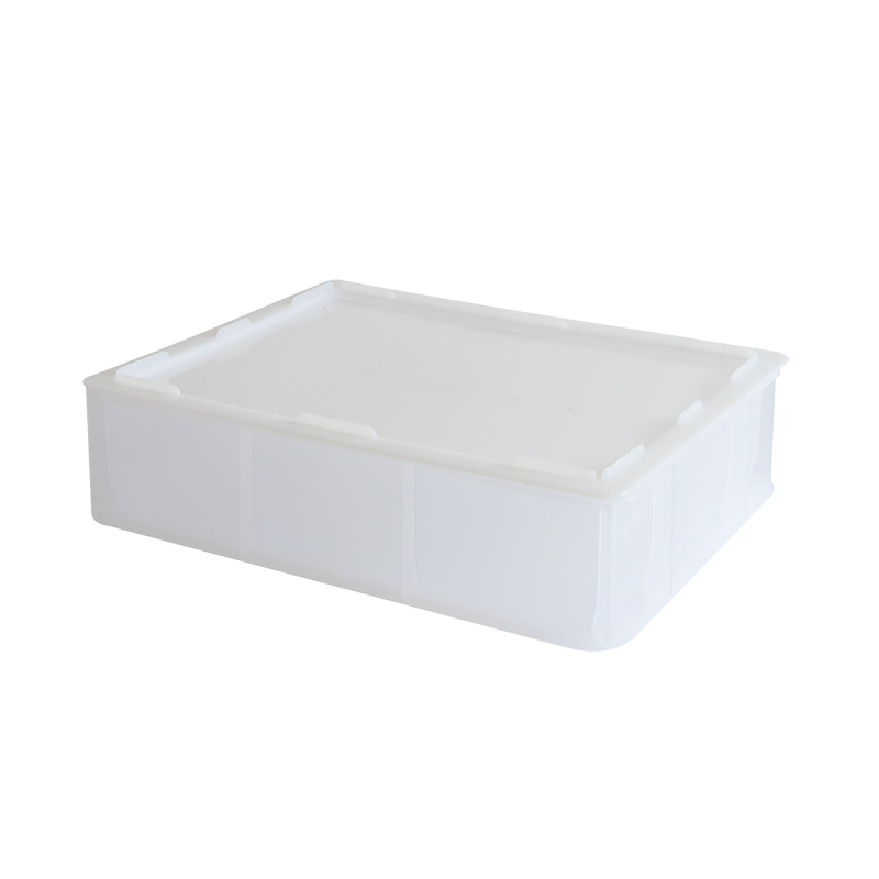 Couvercle en plastique (PEHD) pour bacs à pâtons compacts 400 x 300 mm GILAC. Couvercle idéal pour protéger efficacement les contenus sensibles et/ou fermer le dernier bac de votre pile. Il assure une hygiène optimale à vos pâtons, en les mettant à l'abri des contaminants tels que la poussière, les insectes ou les autres agents pathogènes. Doté d'ergots sur le dessus pour assurer la stabilité des bacs empilés avec couvercles. Angles extérieurs arrondis pour un environnement de travail sans dommage. Garanti sans odeur. Apte au contact alimentaire (certificat d'alimentarité). Adapté à une utilisation intensive : conçu en PEHD, à la fois léger et d'une grande robustesse. Fabriqué en France. 100 % recyclable. Choisissez la qualité professionnelle GILAC pour vous équiper. Ce couvercle s'adapte parfaitement au bac à pâtons 400 x 300 mm GILAC. Un modèle de couvercle clipsable GILAC est également disponible pour le bac à pâtons 400 x 300 mm.