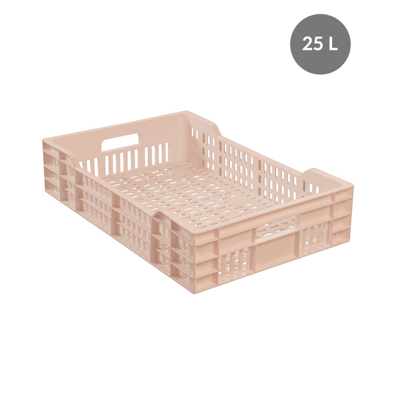Cette grande caisse alimentaire ajourée, très résistante, est idéale pour transporter et stocker en nombre les fruits et légumes. Avec ses coloris tendance et sa faible hauteur, inutile de la cacher ; elle peut être empilée dans un coin du cellier. Comme la petite caisse 20 L, elle reprend les standards des caisses utilisées par les professionnels : poignées intégrées pour faciliter la prise en main, parois ajourées pour assurer l’aération de la caisse et elle est facilement empilable sur une grande hauteur. Sa grande contenance de 25 L est idéale pour entreposer des pommes, par exemple ! Vous pouvez également la détourner de sa fonction principale pour en faire une caisse de rangement dans une chambre d’enfant : elle se glissera parfaitement sous les lits et se fera discrète en version blanche ou déco avec ses couleurs douces.