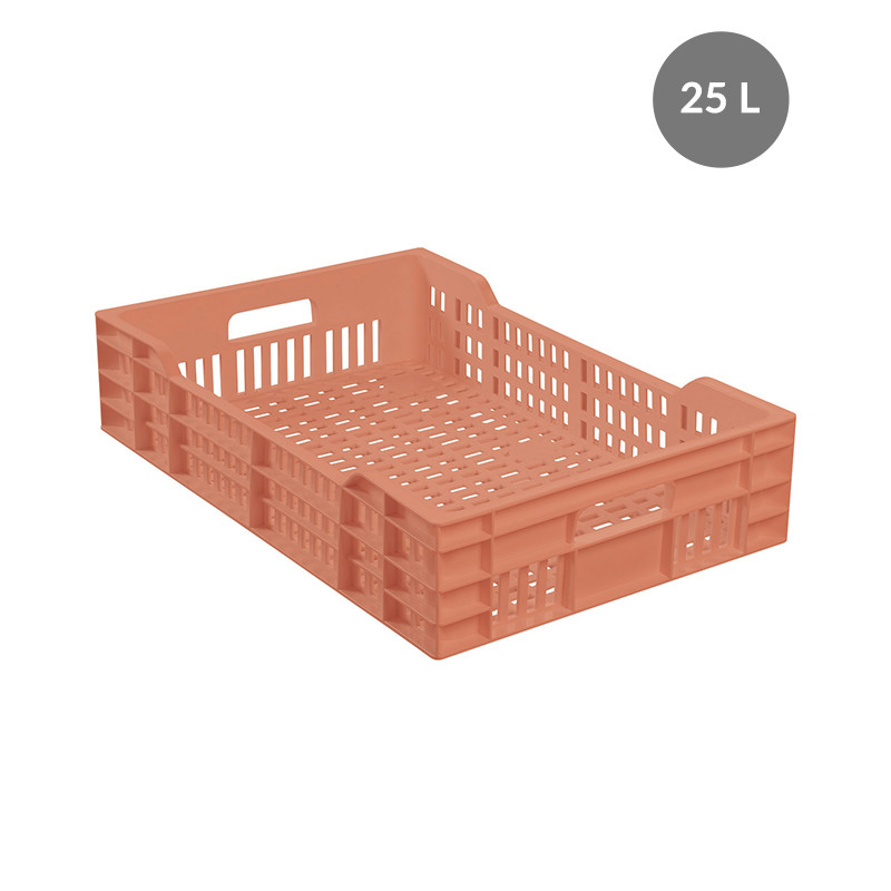 Cette grande caisse alimentaire ajourée, très résistante, est idéale pour transporter et stocker en nombre les fruits et légumes. Avec ses coloris tendance et sa faible hauteur, inutile de la cacher ; elle peut être empilée dans un coin du cellier. Comme la petite caisse 20 L, elle reprend les standards des caisses utilisées par les professionnels : poignées intégrées pour faciliter la prise en main, parois ajourées pour assurer l’aération de la caisse et elle est facilement empilable sur une grande hauteur. Sa grande contenance de 25 L est idéale pour entreposer des pommes, par exemple ! Vous pouvez également la détourner de sa fonction principale pour en faire une caisse de rangement dans une chambre d’enfant : elle se glissera parfaitement sous les lits et se fera discrète en version blanche ou déco avec ses couleurs douces.