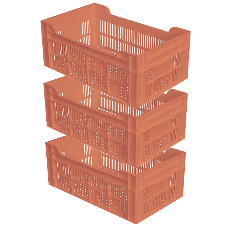 Lot de 3 caisses alimentaires ajourées de 20 L polyvalentes, résistantes et de petite taille.